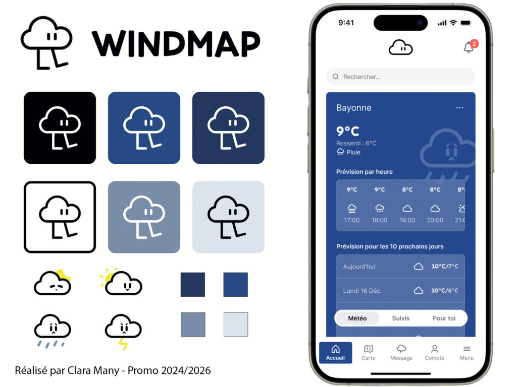 Réaliser l’interface d’une application météo nommé WINDMAP qui indique les vents, les marées et les vagues.